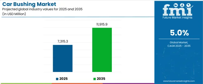 The global car bushing market is estimated to be valued at USD 7,315.3 million in 2025.
