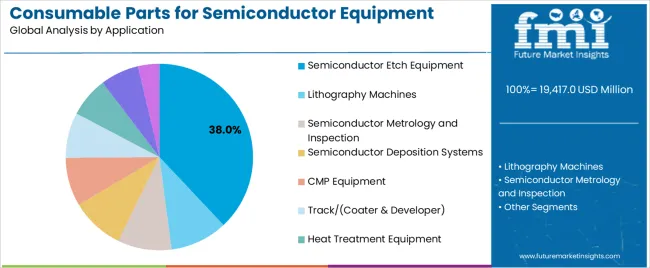 In terms of application, semiconductor etch equipment segment to command 38.0% share in the consumable parts for semiconductor equipment market in 2025.