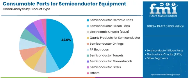 Primary Classification: The consumable parts for the semiconductor equipment market segments by product type into semiconductor ceramic parts, semiconductor silicon parts, electrostatic chucks, quartz products, O-rings, RF electrodes, and filtration components, representing the evolution from basic consumable parts to sophisticated precision-engineered solutions for comprehensive semiconductor manufacturing optimization.
