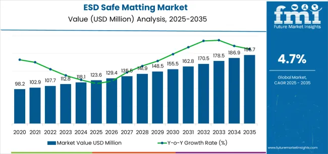The ESD safe matting market stands at the threshold of a decade-long expansion trajectory that promises to reshape electronics manufacturing safety and static control solutions. The market's journey from USD 123.6 million in 2025 to USD 195.6 million by 2035 represents substantial growth, demonstrating the accelerating adoption of advanced static dissipative materials and electrostatic discharge protection across electronics manufacturing facilities, laboratory operations, and data center environments.