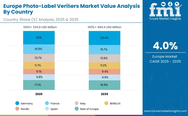 South Korea will lead with 7.0% CAGR, driven by AI imaging and smart packaging innovation. Advanced 3D scanning technologies ensure optical precision for pharmaceutical and electronics labeling. Regulatory pressure on serialization compliance is expanding the adoption of automated label verification. Growing export activity in labeling equipment and industrial robotics is positioning South Korea as a leading supplier of next-generation photo-verification systems.